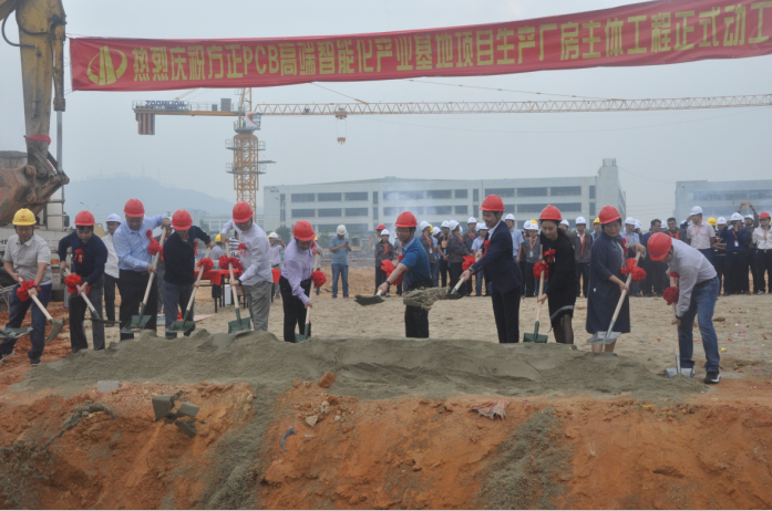 11月5日上午9:08分,广东省珠海市斗门区富山工业园里鞭炮轰鸣,方正科技旗下方正PCB智能工厂首次浇筑仪式在此如期举行。富山管委会领导、集团相关领导及方正PCB总办会成员手持铁锨铲沙进浇筑池,随后大量混凝土首次浇筑进方正PCB高端智能化产业基地主厂房里,这标志着大规模主体结构施工将步入快速建设期。