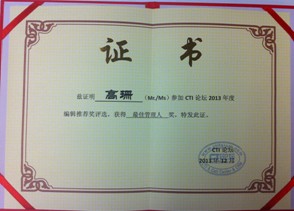 (上图:CTI论坛2013年度编辑推荐奖奖牌)