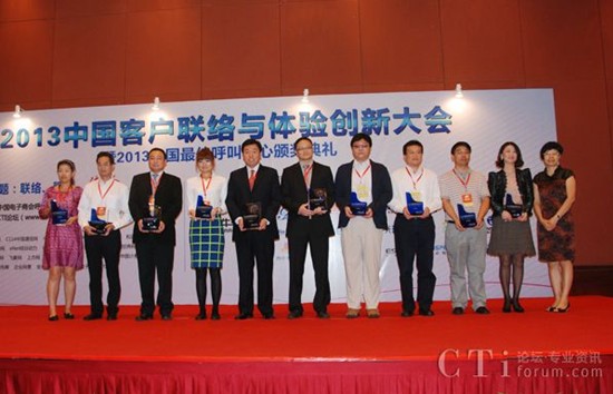 由CTI论坛主办的2013中国客户联络与体验创新大会暨2013中国最佳呼叫中心颁奖典礼,重点探讨以移动互联、大数据、云计算及社交媒体等为代表的新一轮技术变革之下,中国客户联络与服务体验的创新理念、技术和知识。"中国最佳呼叫中心"奖项的评选,重在鼓励努力提升自身呼叫中心运营管理水平,建立符合国情并接轨国际的呼叫中心标准体系,为推动呼叫中心产业的发展作出贡献的企业。该奖项的评选是由国家级行业协会中国电子商会呼叫中心与客户关系管理专业委员会(CNCCA)牵头,国家工业和信息化部支持的唯一代表中国呼叫中心年度大奖的评选。