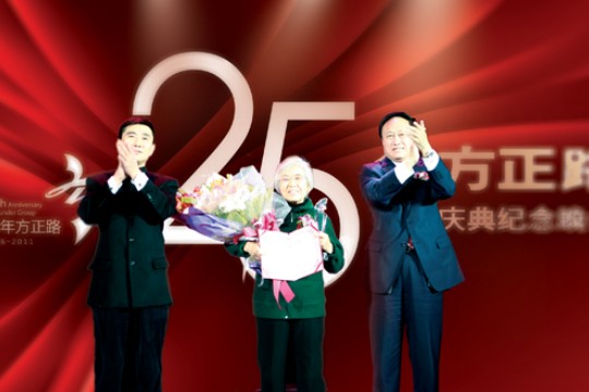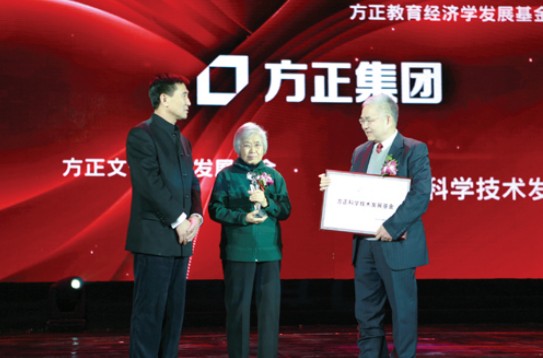 在方正集团25周年庆典上,王选院士被授予“方正终身成就奖”,方正集团精心制作出版的《王选院士画传》同时被赠予王选院士夫人陈堃銶教授。