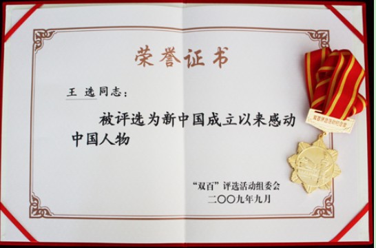 2009年9月10日,王选院士当选“100位新中国成立以来感动中国人物”。