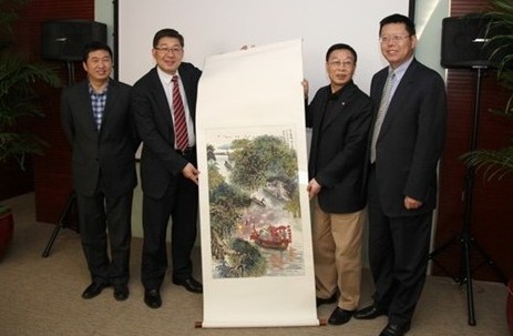 双方接着就珠海PCB产业园的发展情况、推进落实方正集团未来在富山工业园的投资计划进行了深入沟通和探讨,并一致认为,应继续加强珠海与方正的交流和合作,实现双方共赢。会议的最后,刘小龙副市长代表珠海市政府向方正集团赠送了当地最富盛名且极具特色的水乡画卷。